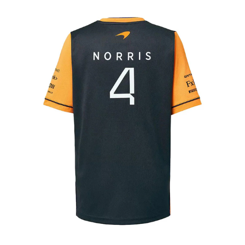A vibrant kids’ T-shirt inspired by McLaren F1 and driver Lando Norris, featuring the iconic team orange colourway. Designed for young fans, this tee combines comfort with bold racing style, making it perfect for everyday wear and race-day excitement.